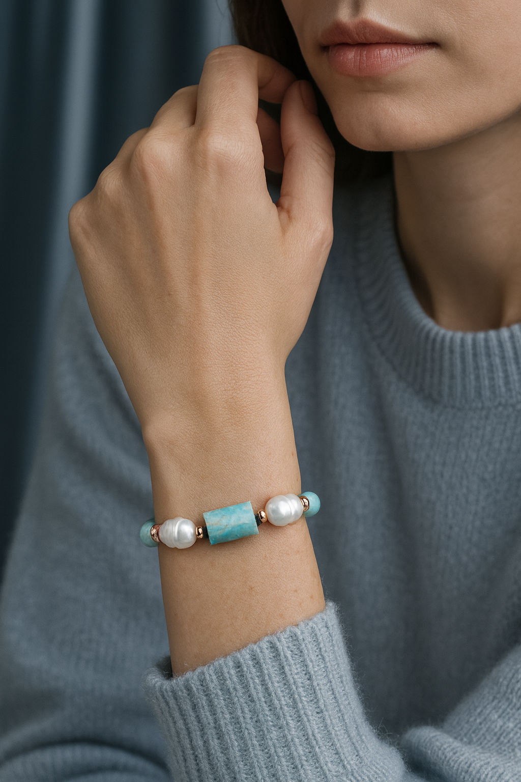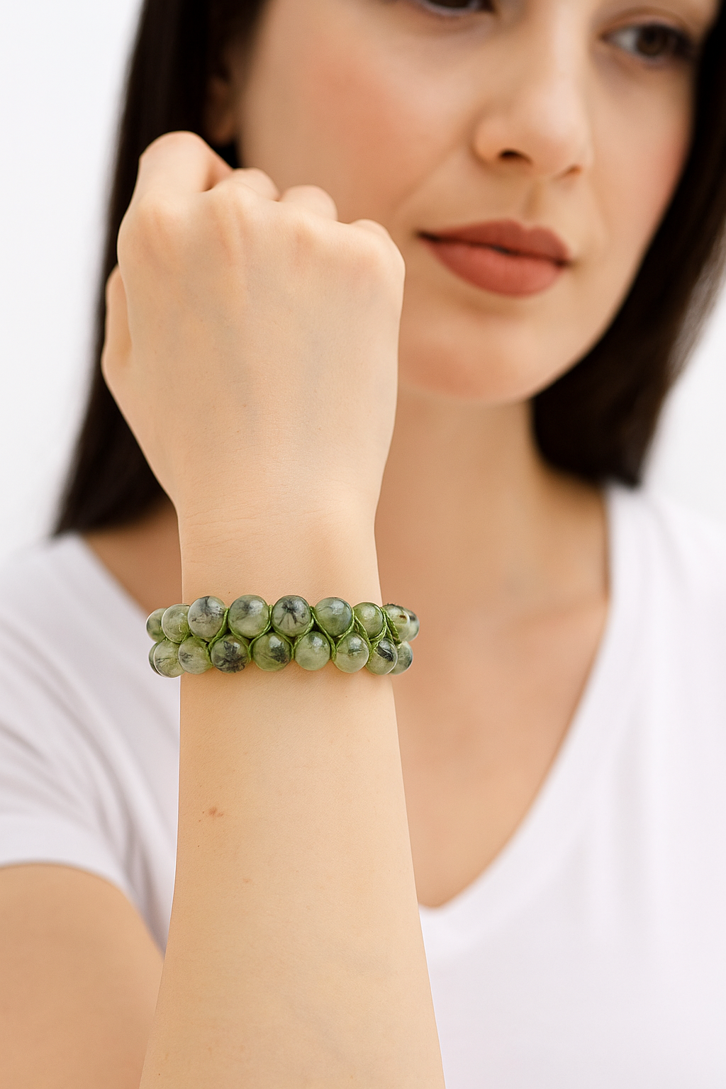Sertifikalı Apatit Doğal Taş 925 Ayar Gümüş Bileklik | Pirtash | Özel Üretim
