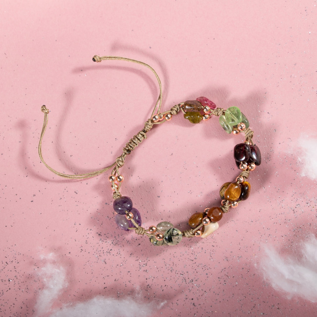 Sertifikalı Sitrin – Pembe Kuvars – Ay Taşı – Doğal Taş Makrome Bileklik
