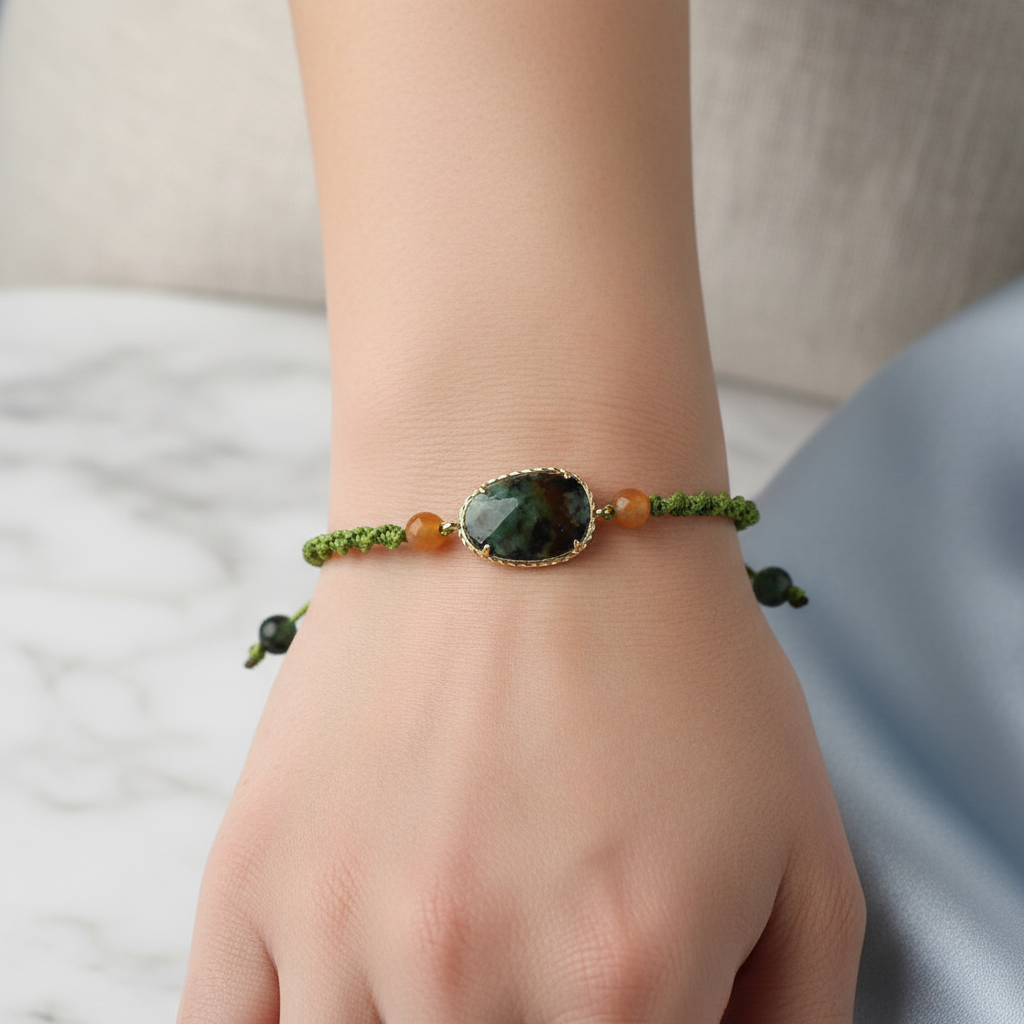 Afrika Turkuaz – Turuncu Aventurin Doğal Taş Makrome Bileklik – Özel Tasarım