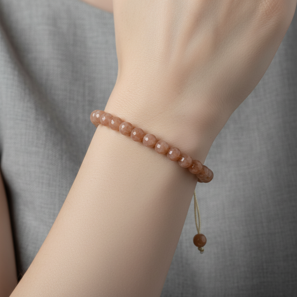 Güneş Taşı 6 mm Merdiven Kapama Doğal Taş Bileklik – El İşçiliği