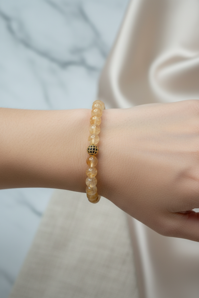 Sitrin Doğal Taş Bileklik – Zirkon Aparatlı 8 mm Özel Tasarım