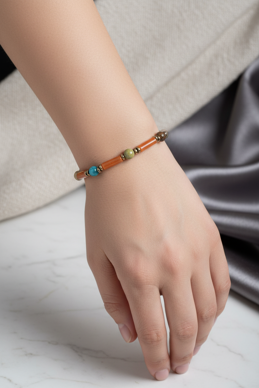 Apatit, Turmalin ve Aventurin Doğal Taş Bileklik – Unisex Şık Tasarım