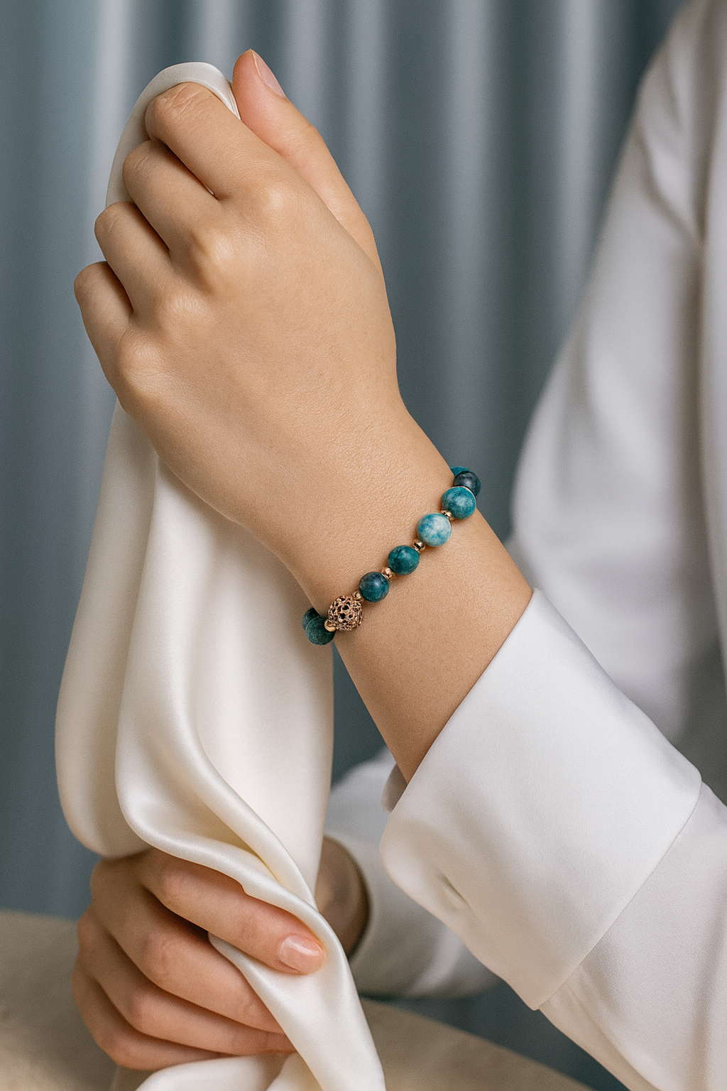 Her taş %100 doğaldır; damar yapısı, renk tonu ve parlaklığı sayesinde her bileklik benzersizdir.