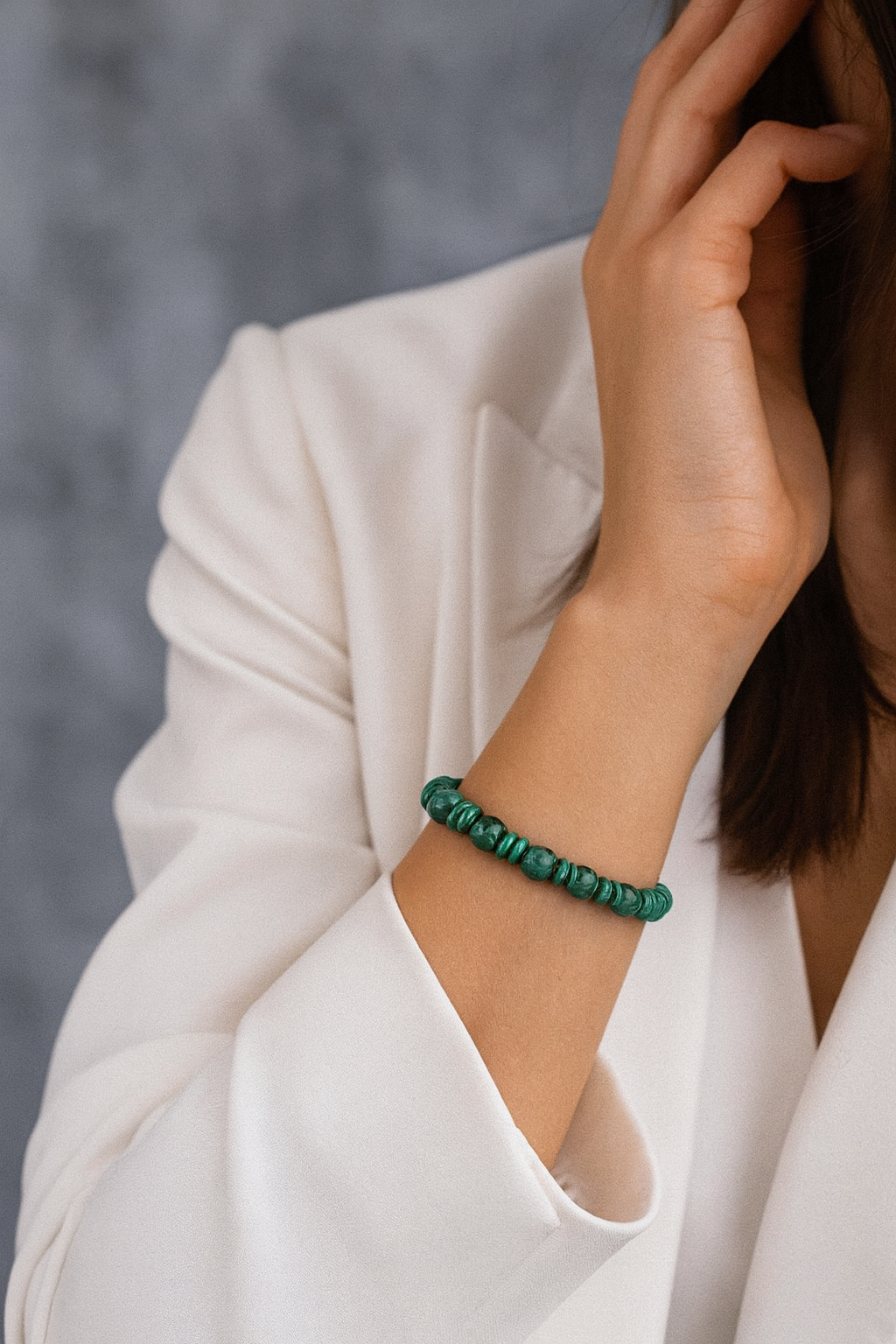 Her malakit taşı %100 doğaldır; kendine özgü desenleri ve renk geçişleri sayesinde her bileklik tek ve tekrarsızdır.