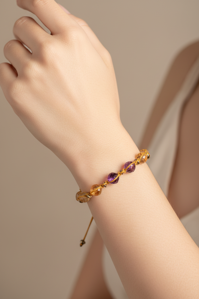 Pirtash ile sitrinin enerjik tonlarını, ametistin asaleti ve hematitin modern şıklığını; el işçiliği ve bilimsel güvenceyle bileğinizde taşıyın.