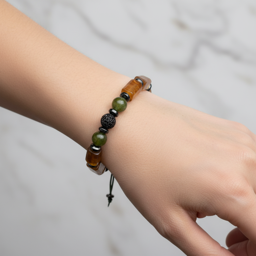 Zebercet, Sitrin, Hematit Doğal Taş Makrome Bileklik