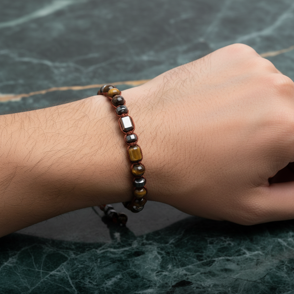 Her taşın doğal yapısı nedeniyle her bileklik benzersizdir. Erkeklere özel tasarlanmış bu bileklik, güçlü ve zarif bir görünüm isteyenler için ideal seçimdir.