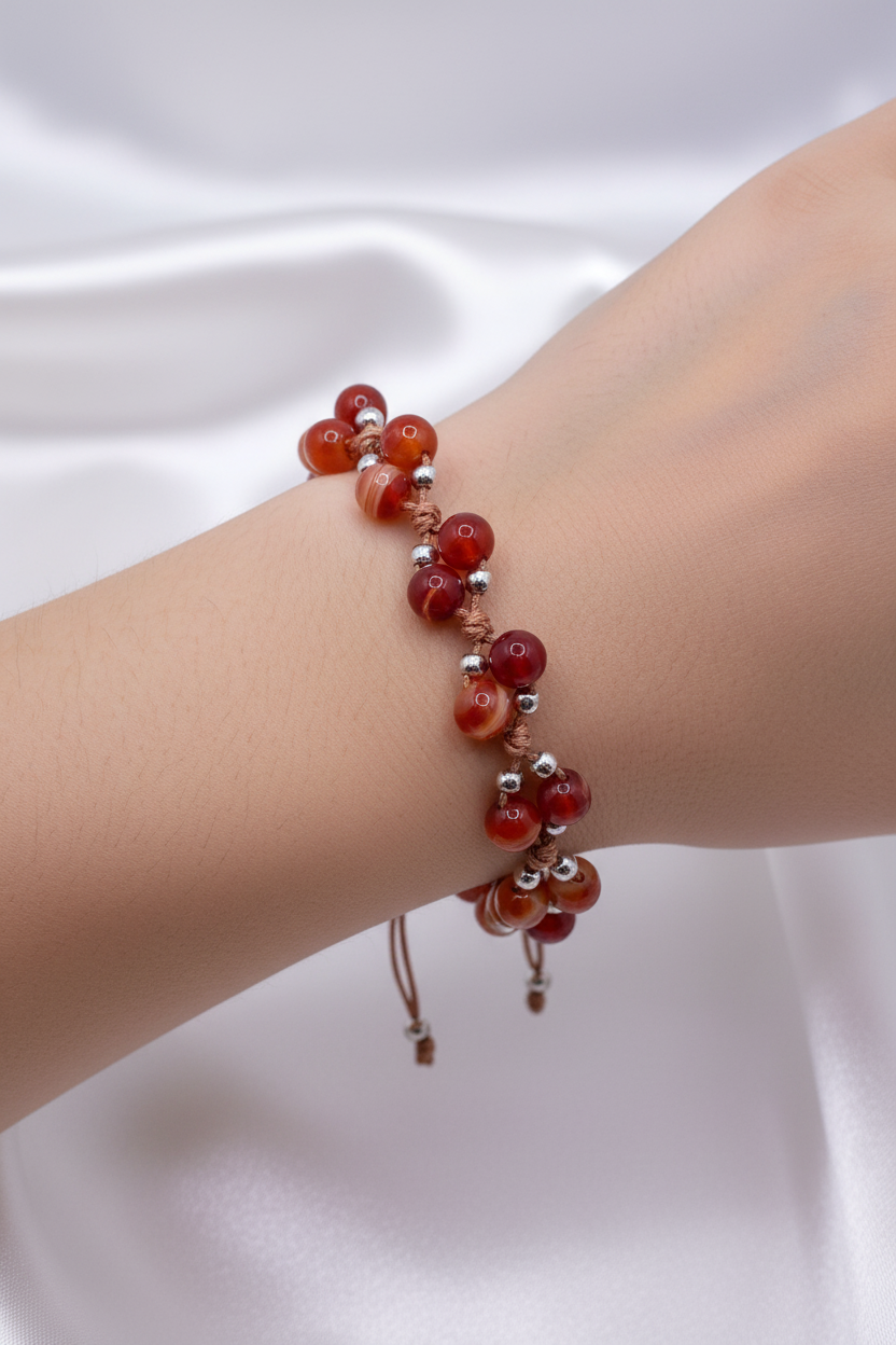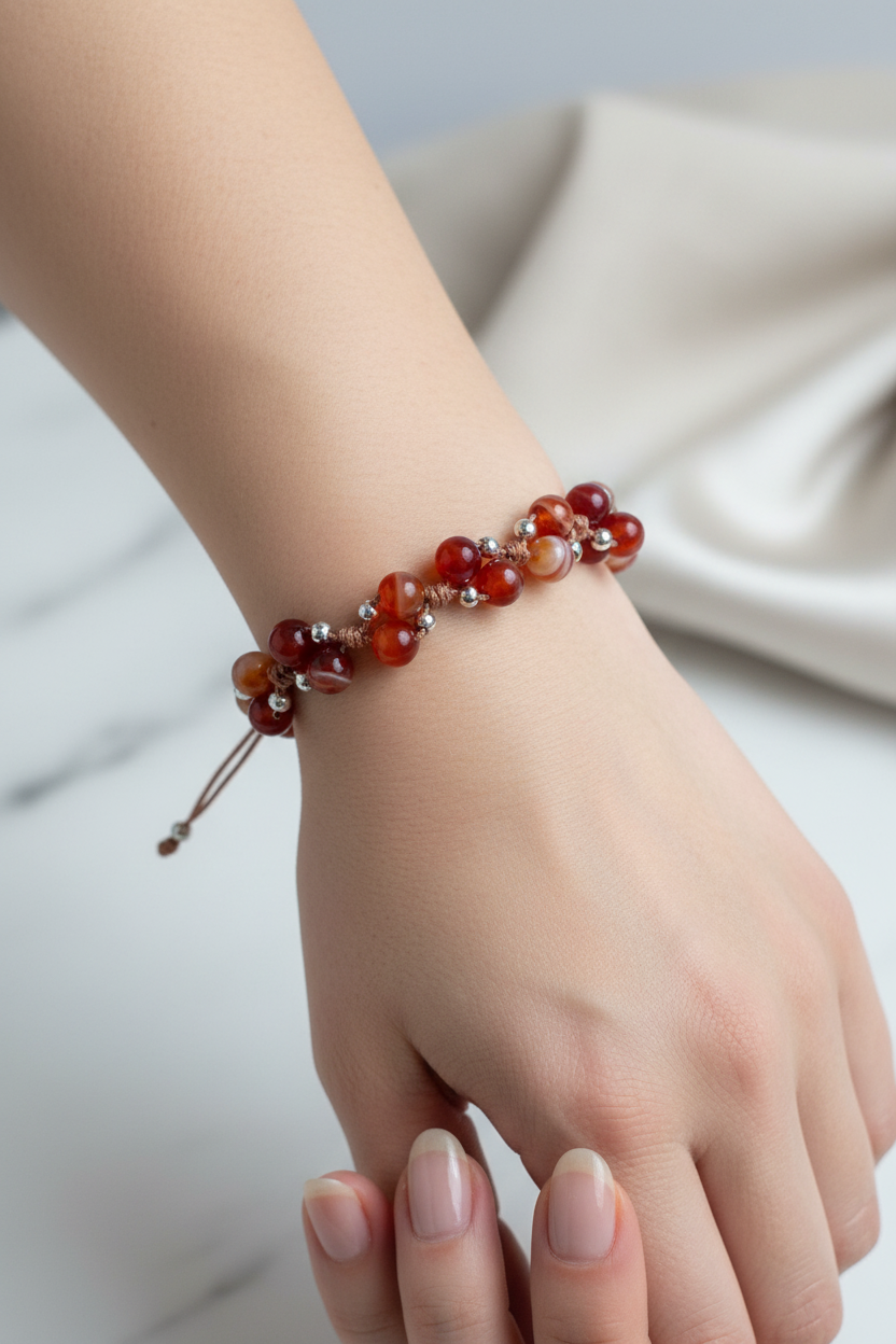 Karnelyan Akik Doğal Taş Merdiven Kapama Bileklik – Ayarlanabilir İpli Tasarım