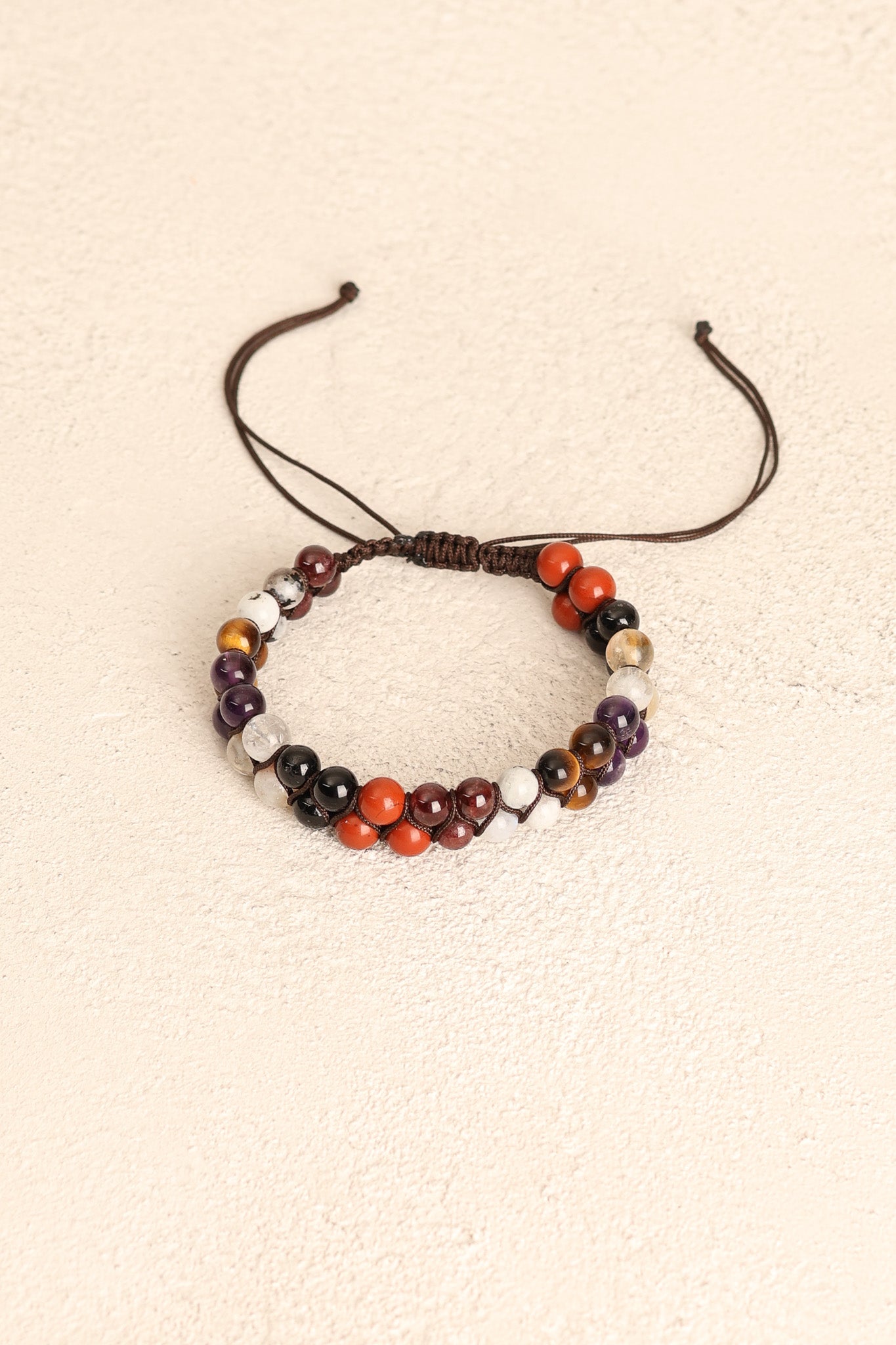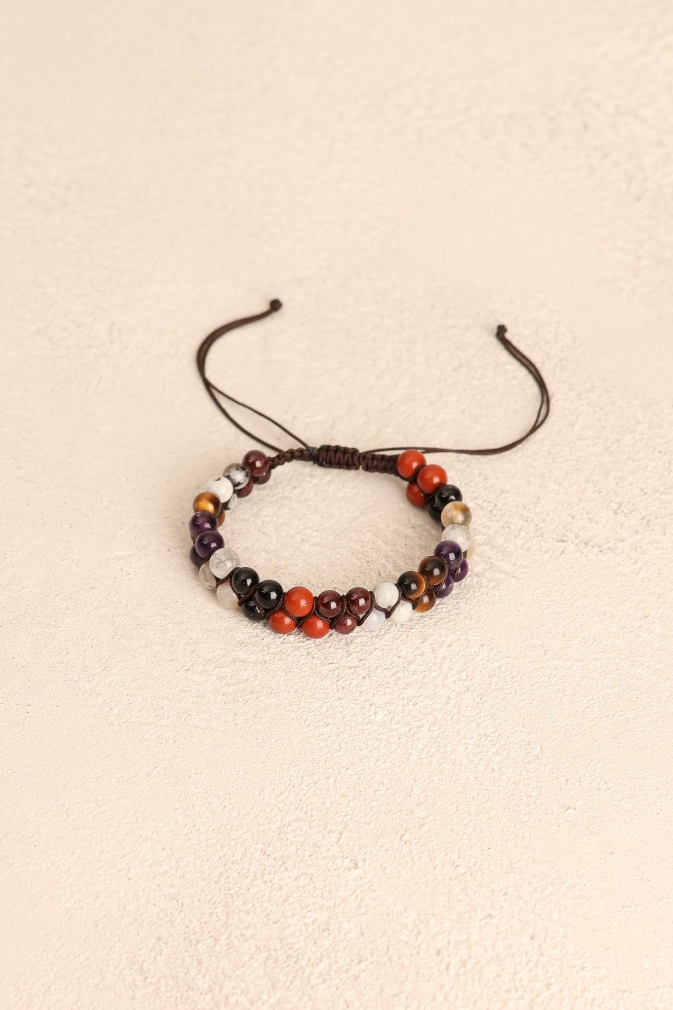 Gizemli ve güçlü karakteriyle bilinen Akrep burcuna özel olarak tasarlanan bu bileklik, burcun enerjisine uyumlu seçilmiş 7 farklı doğal taşın birleşiminden oluşur.