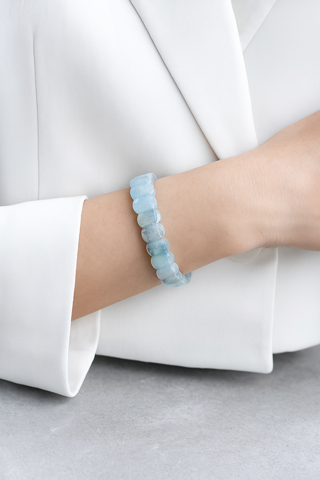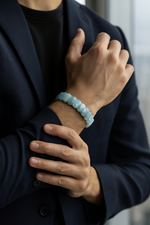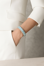 Pirtash kalitesiyle akuamarin taşının berrak, sakin ve ferahlatıcı enerjisini bileğinizde taşıyın.