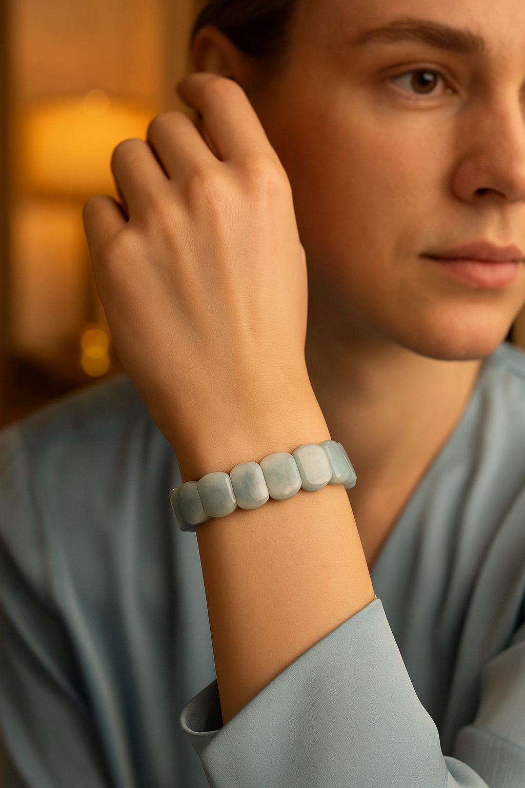 Akuamarin taşının doğallığını ve sofistike görünümünü bir araya getiren bu bileklik, hem günlük kullanımda hem özel anlarda şıklığınızı tamamlar. Her taş, doğal yapısı gereği kendine özgü renk geçişleri ve berraklıklar barındırır.