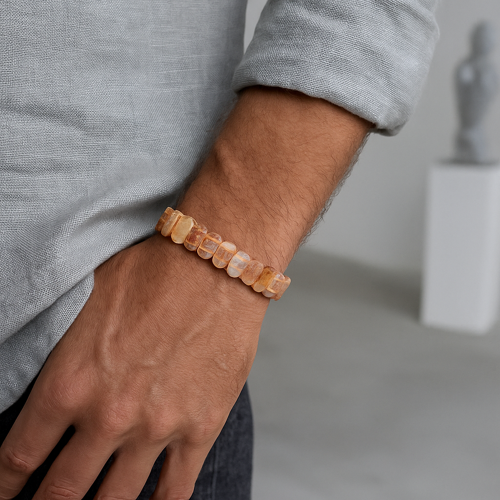 Pirtash kalitesiyle altın rutilli kuvars taşının parıltılı, rafine ve eşsiz enerjisini bileğinizde taşıyın.