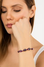 Her ametist taşı, kendine özgü damar yapısı, saydamlık ve renk derinliğiyle farklılık gösterdiği için her bileklik benzersizdir. Doğal taşın zarafetini sade ve şık bir formda taşımak isteyenler için ideal bir seçimdir.