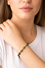 Anyolit taşı, taşıdığı doğal renk kontrastları ve minerallerin birleşimi sayesinde her bileklikte farklı ve eşsiz bir görünüm sunar. Doğal, güçlü ve karakter sahibi bir aksesuar arayanlar için idealdir.