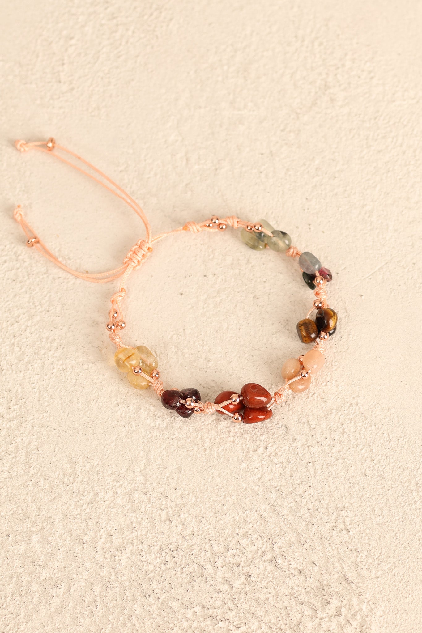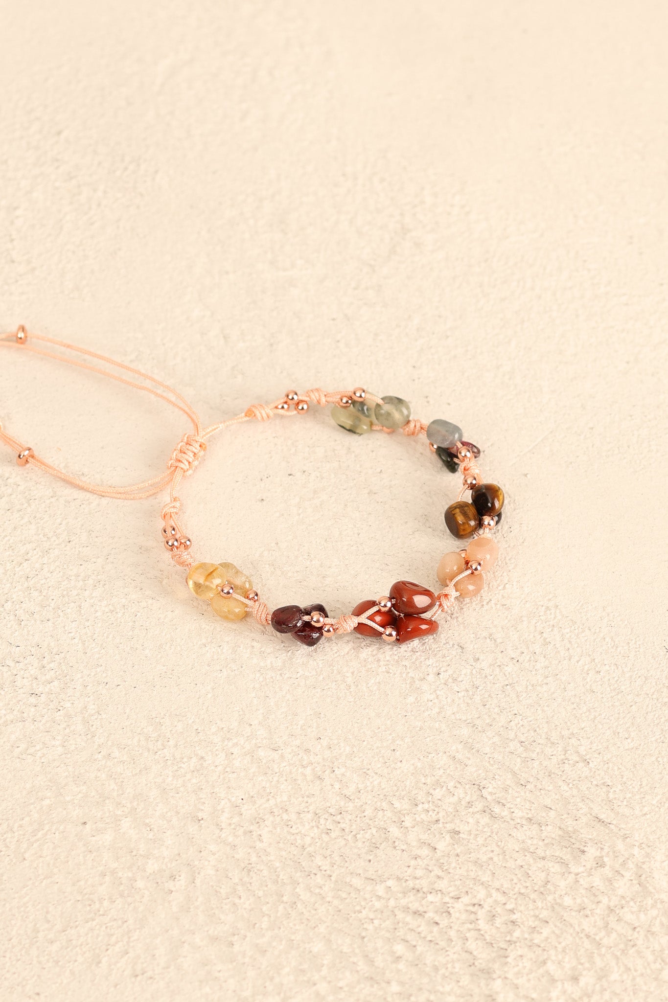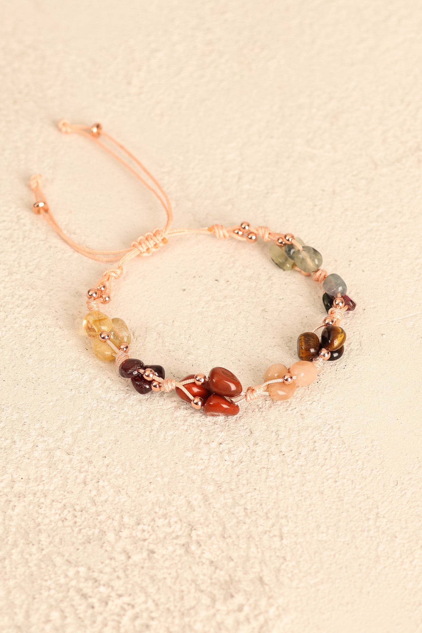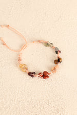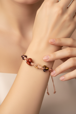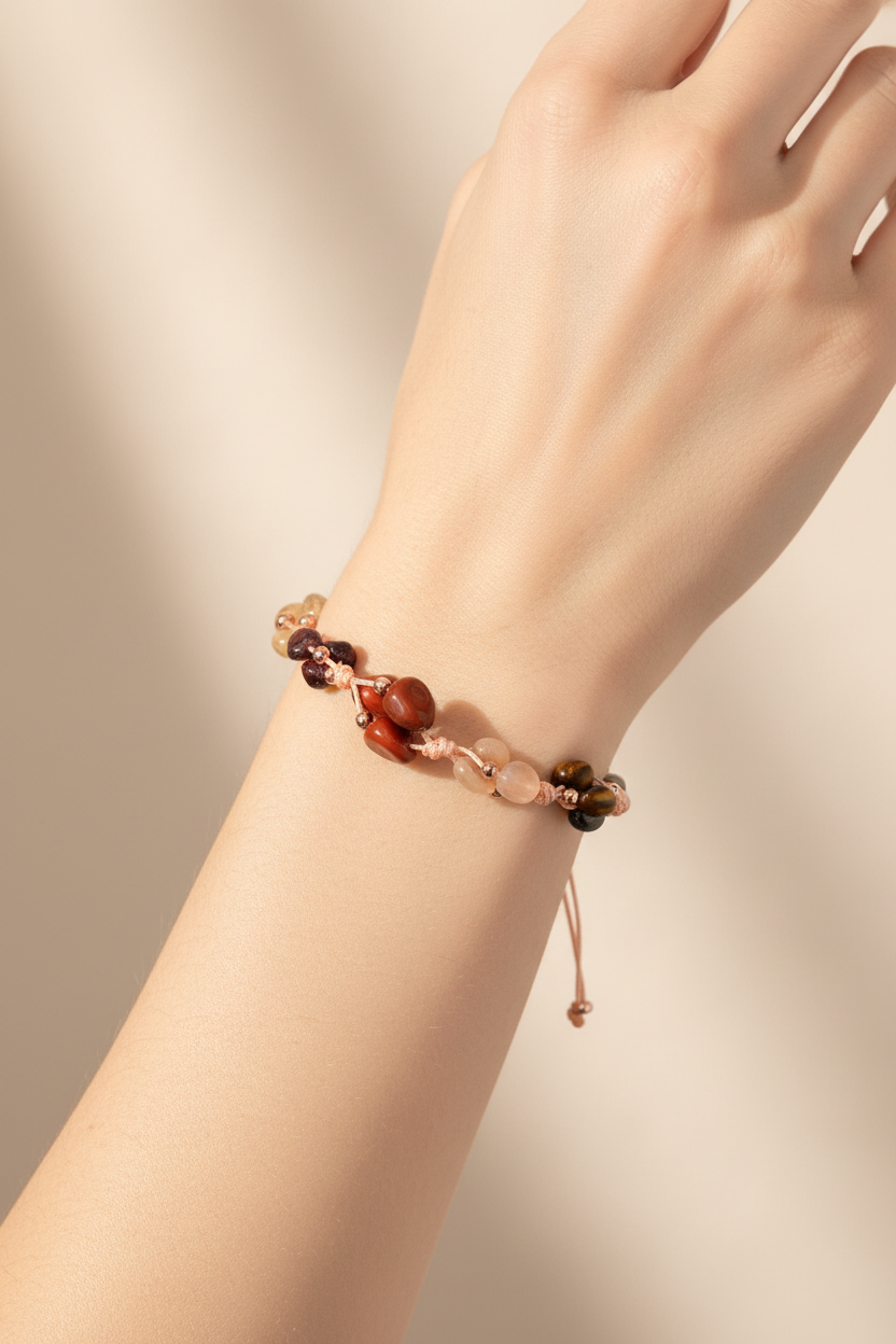 Bu bileklikteki doğal taşlar, Aslan burcunun içsel gücünü ve dışa yansıyan karizmasını destekleyecek şekilde bir araya getirilmiştir. Renkli ve parlak taşların birleşimi, dikkat çekici ama zarif bir görünüm sunar.