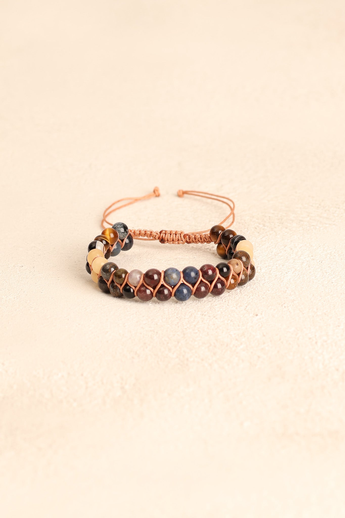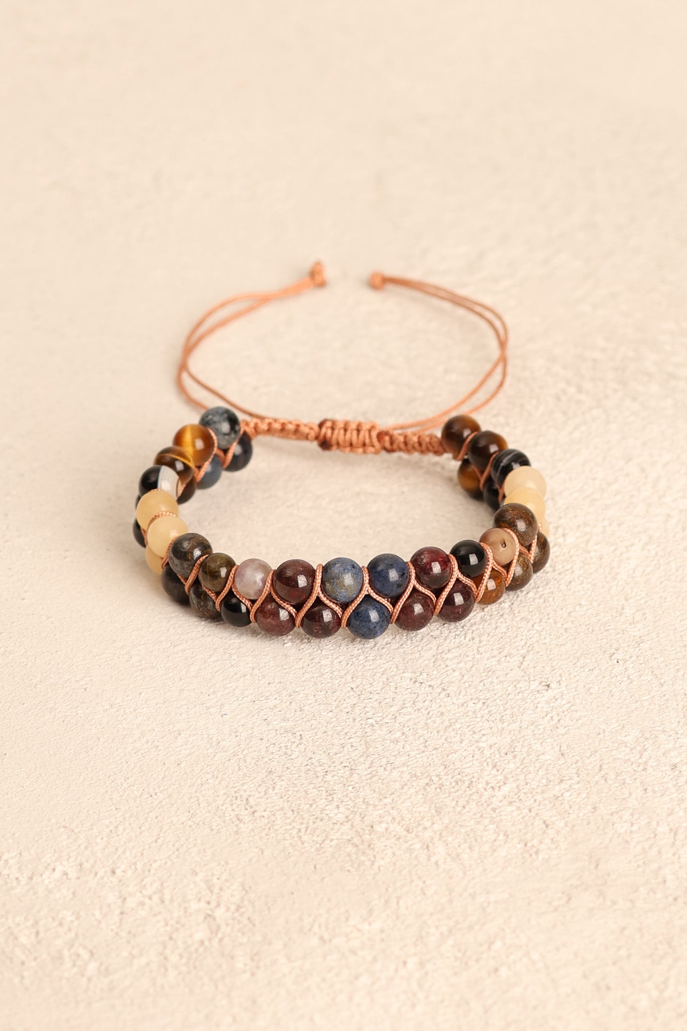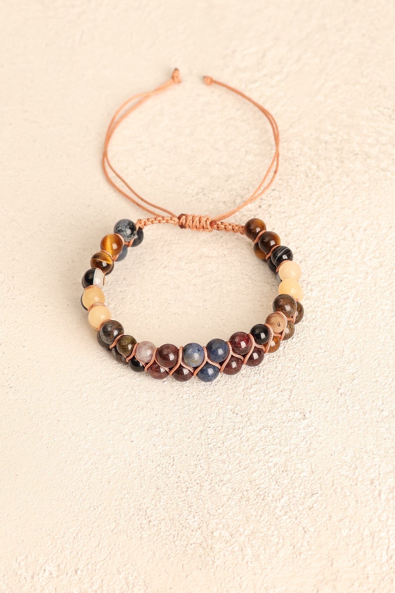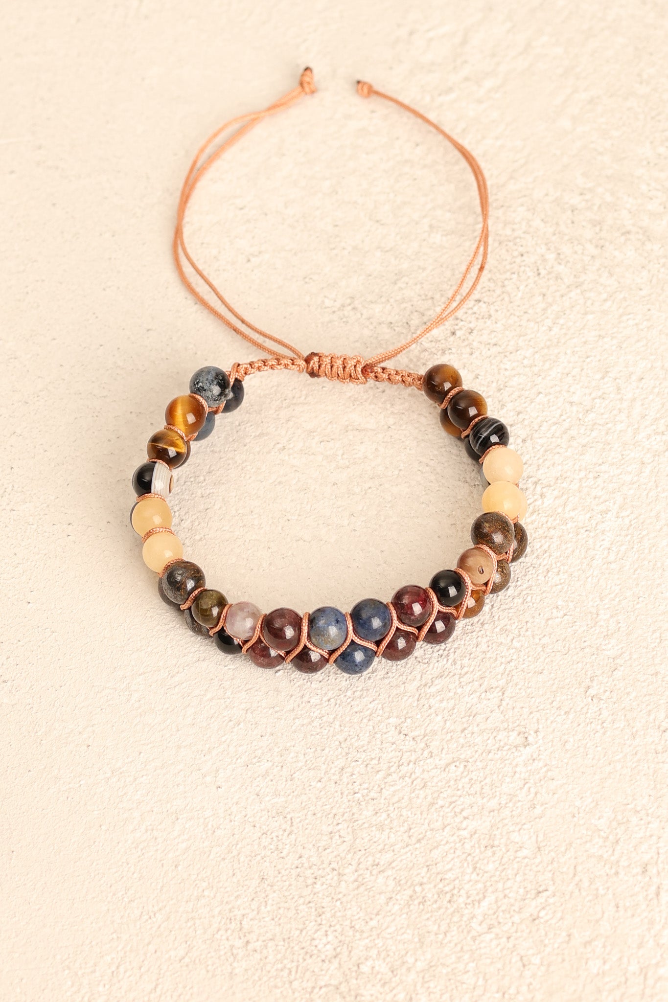 Sertifikalı Aslan Burcu Doğal Taş Çift Sıra Makrome Bileklik – 6 mm | Pirtash | Özel Üretim