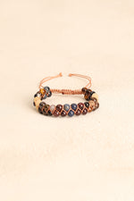 Çift sıra dizilim ve el işçiliğiyle örülmüş makrome tasarım, bilekliğe hem sağlamlık hem de göz alıcı bir görünüm kazandırır.