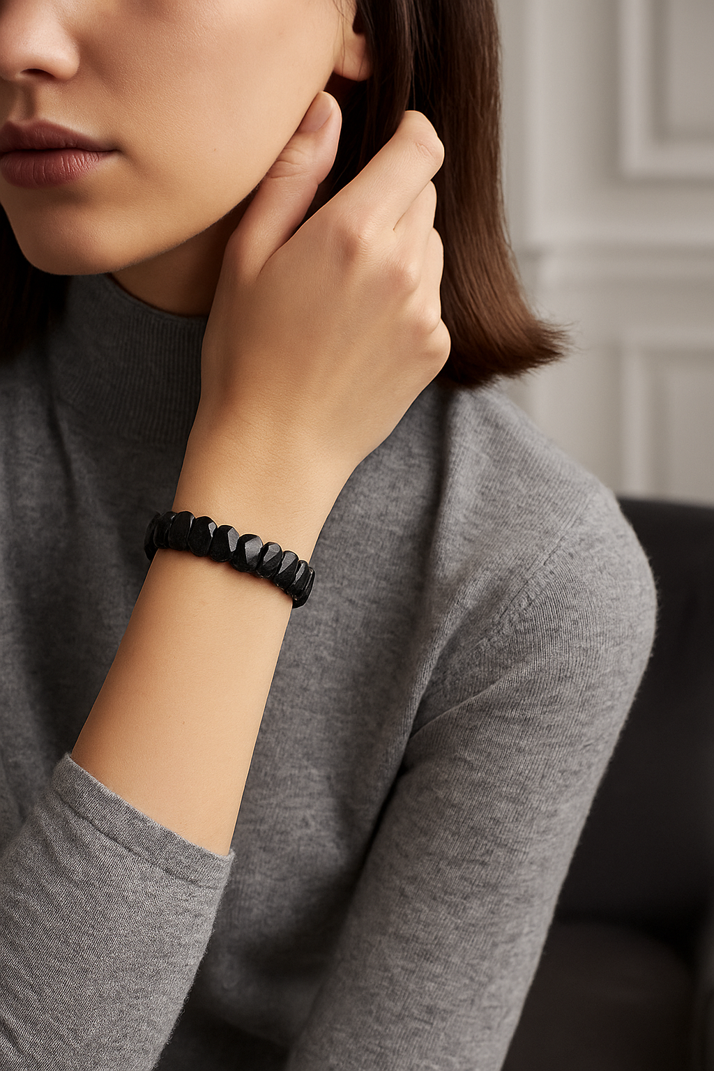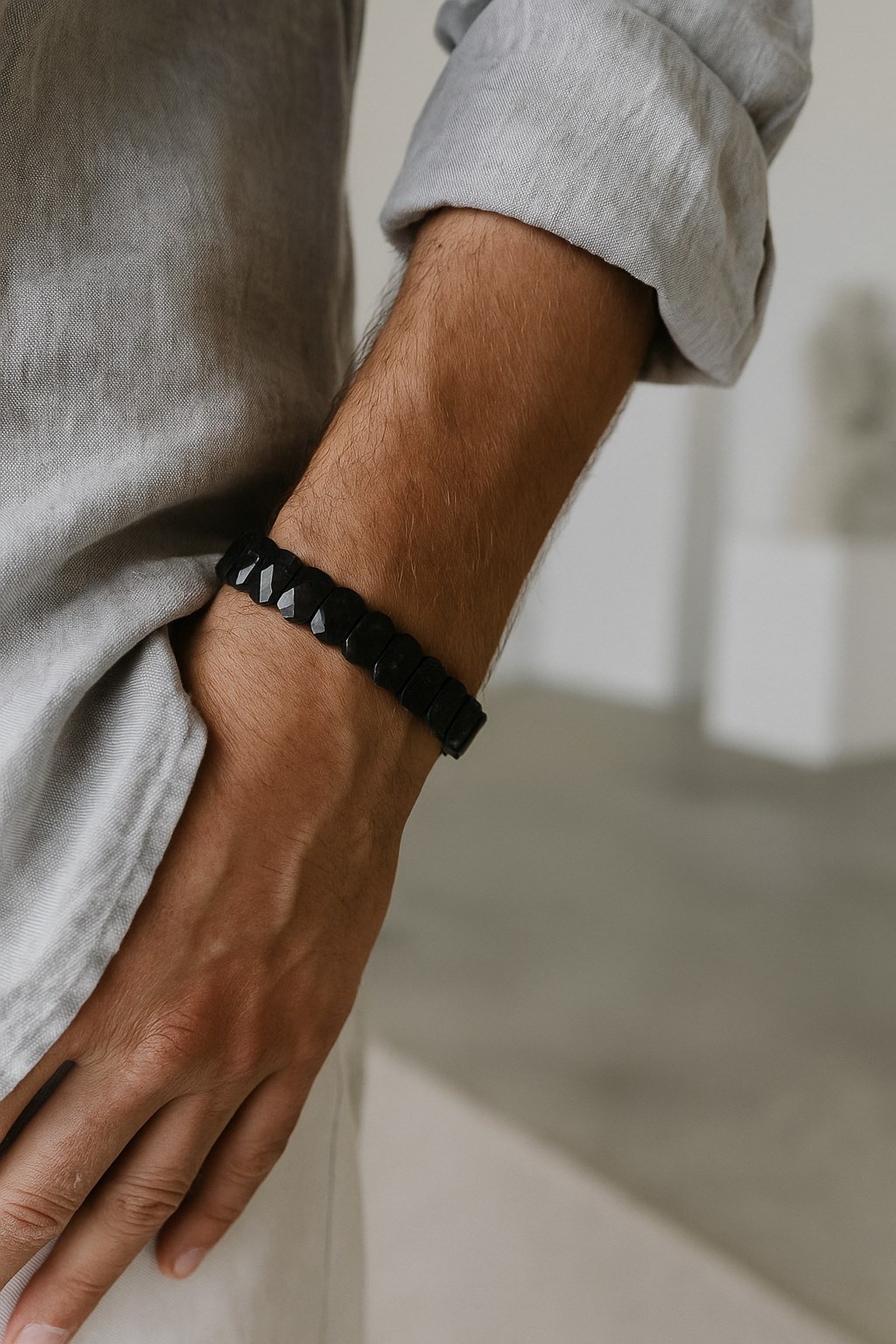 Pirtash kalitesiyle biyotit taşının güçlü, gizemli ve metalik enerjisini bileğinizde taşıyın.