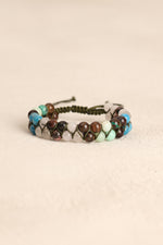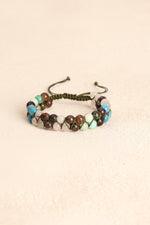 El işçiliğiyle örülmüş makrome bağlama tekniği, bilekliğe hem zarif bir görünüm hem de sağlamlık kazandırır.