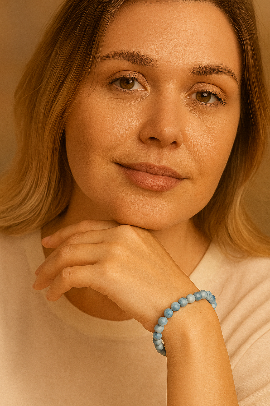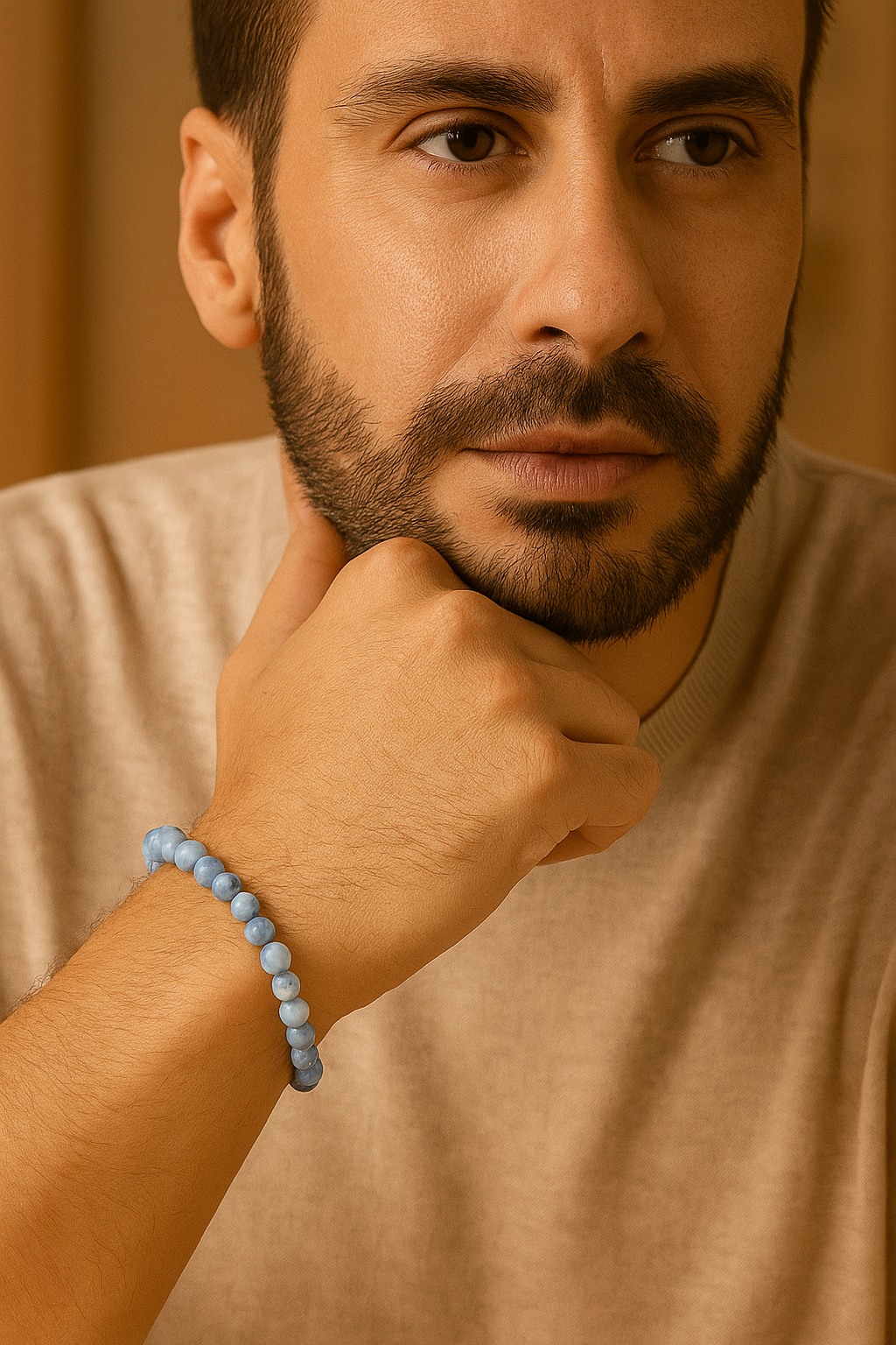 Pirtash kalitesiyle buz mavisi apatit taşının ferahlatıcı ve sofistike enerjisini bileğinizde taşıyın.