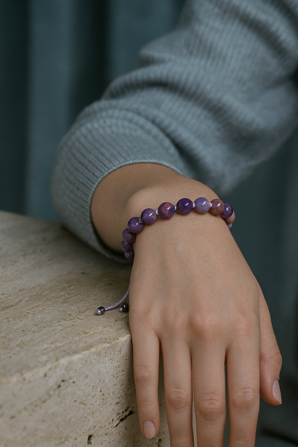 %100 doğal taşlardan oluşan bu özel bileklik, el işçiliğiyle örülmüş ayarlanabilir makrome tasarımı sayesinde farklı bilek ölçülerine rahatlıkla uyum sağlar.