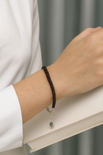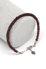 Her taş %100 doğaldır; koyu kırmızı tonları, yarı saydam yapısı ve kristal yoğunluğuyla her bileklik benzersiz bir karakter taşır.