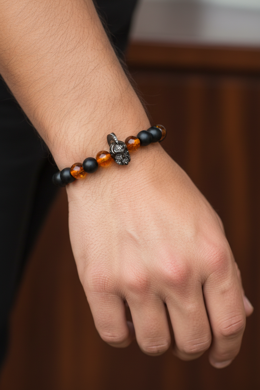 Kehribar & Şungit Doğal Taş Bileklik – Özel Tasarım