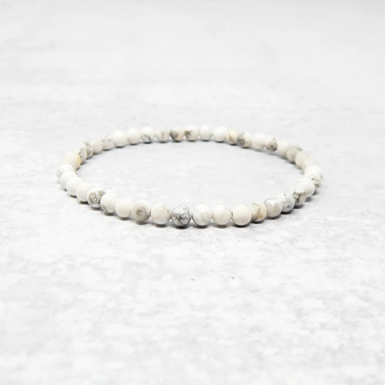 Mat beyaz zemin üzerinde gri damarlarla karakterize edilen Havlit doğal taş bileklik, 6 mm çapında özenle cilalanmış boncuklardan oluşur. Mermerimsi yapısı ve sade estetiğiyle hem zarif hem de modern bir görünüm sunar. Minimalist stil anlayışına sahip kullanıcılar için günlük kullanıma son derece uygundur.