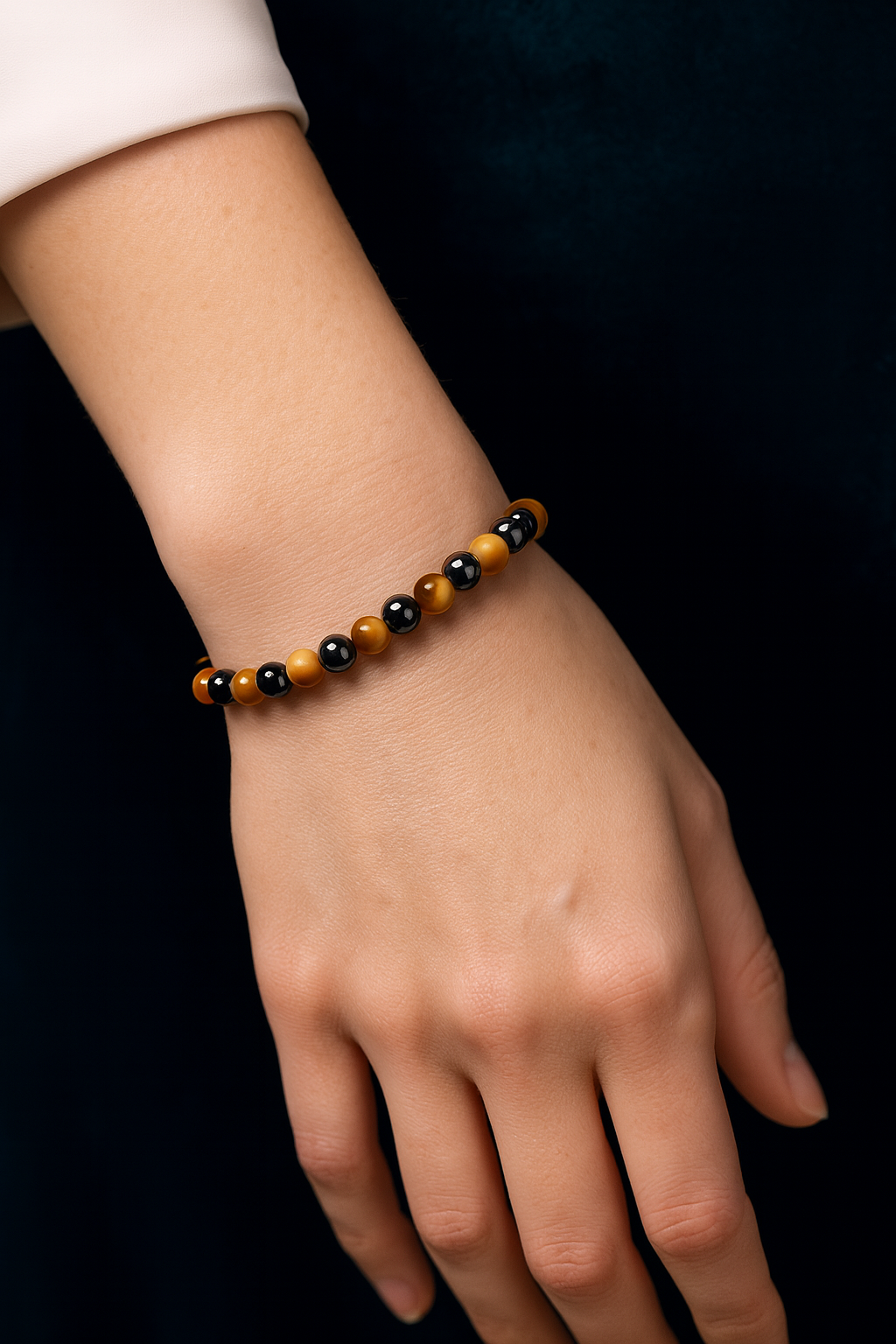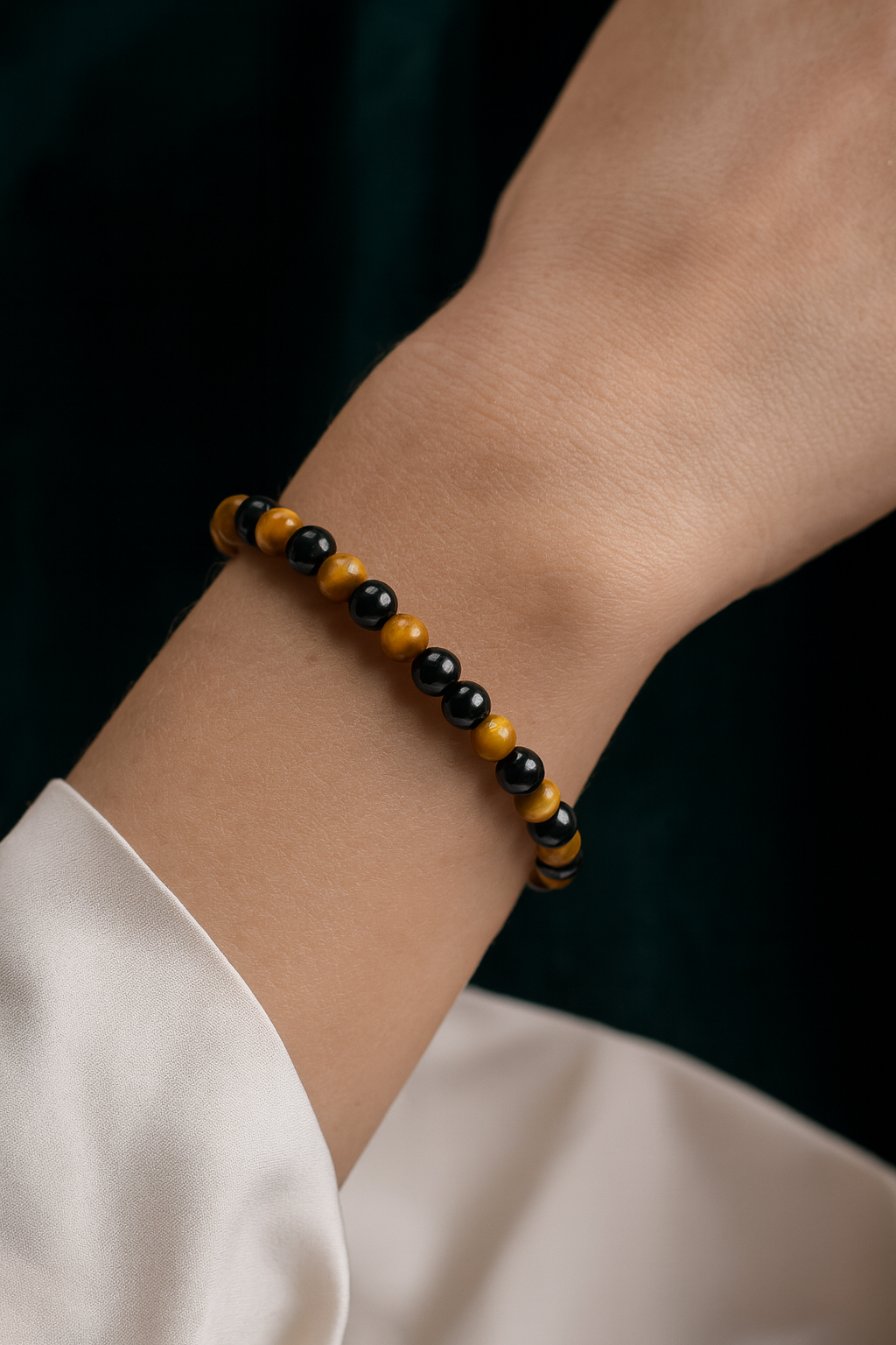 Pirtash ile hematitin metalik şıklığını ve kaplan gözünün altın tonlarını, bilimsel güvence ve özel işçilikle bileğinizde taşıyın.