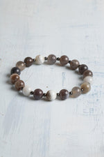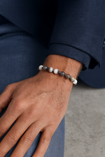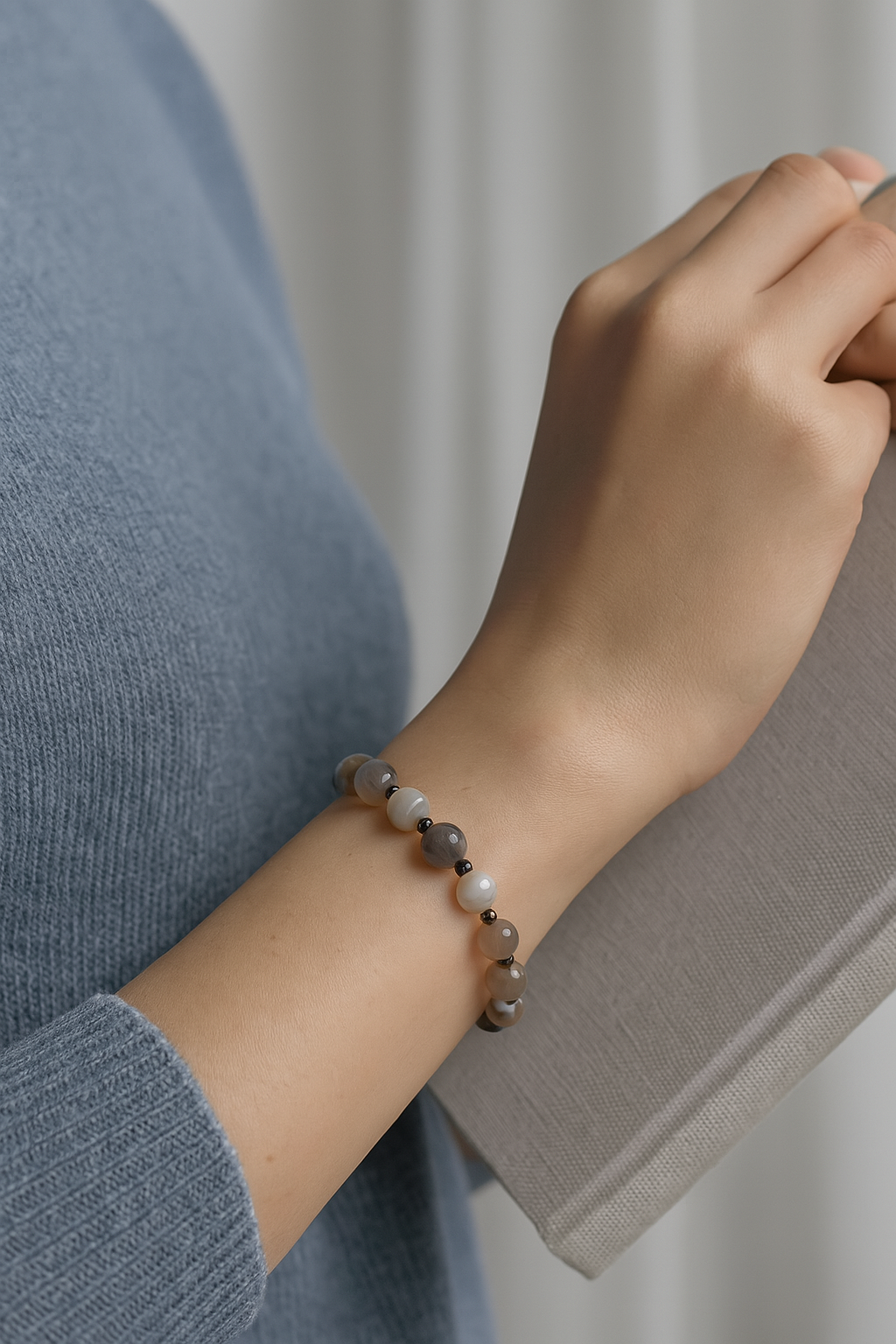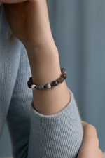 Toprağın sıcak tonlarını ve metalik şıklığı bir araya getiren bu özel bileklik, Kahve Göz Akik ve Hematit taşlarının dengeli uyumuyla tasarlandı.