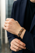 Kahve jasper taşı, doğadan gelen denge ve güven hissini yansıtan renkleriyle bilinir. Özel kesimli bu bileklik modeli, klasik yuvarlak tasarımların ötesinde daha hacimli ve dikkat çekici bir form arayanlara hitap eder. Hem doğal hem karizmatik bir aksesuar tercih edenler için eşsiz bir parçadır.