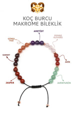 Sertifikalı Koç Burcu Doğal Taş Makrome Bileklik