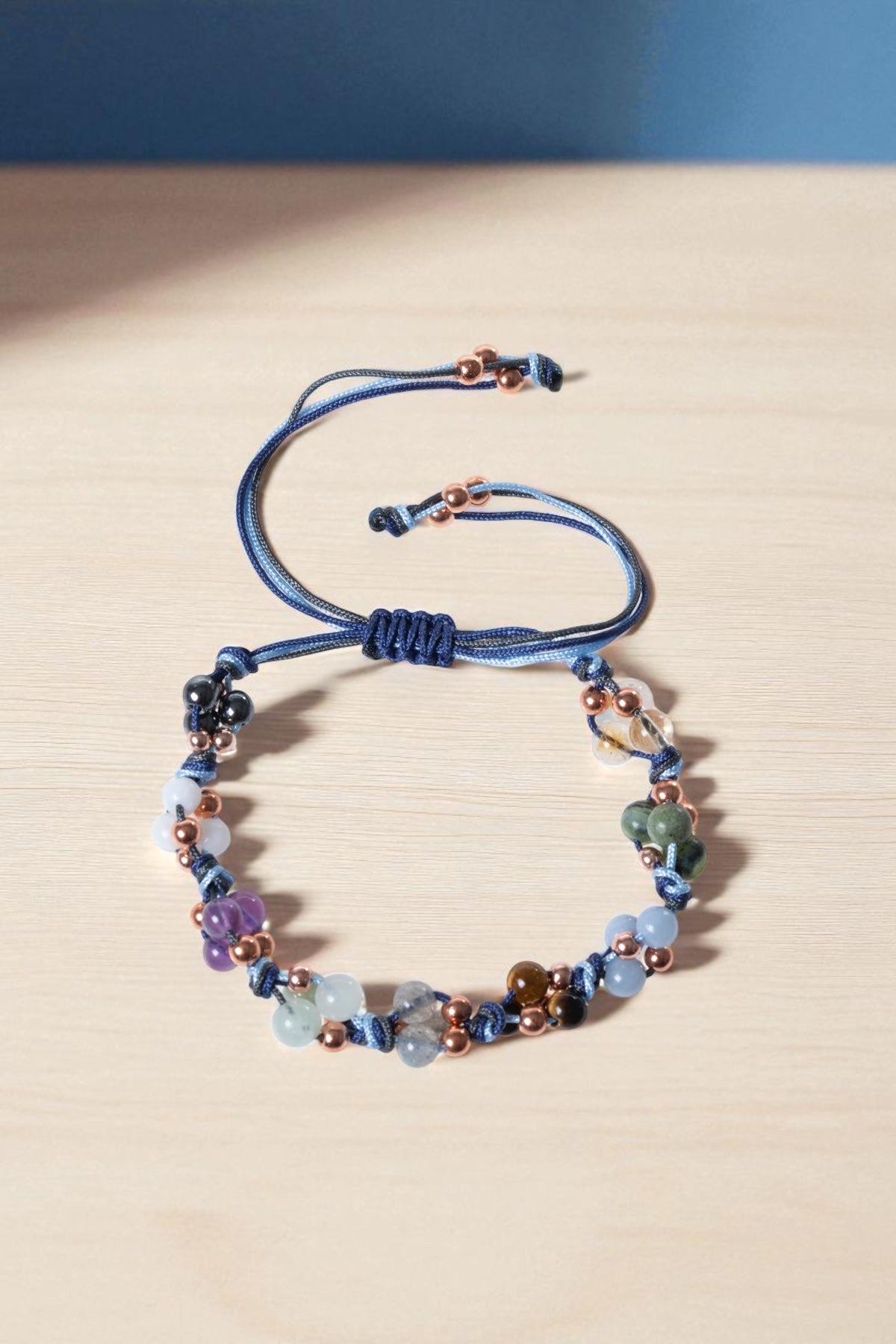El işçiliğiyle örülmüş makrome bağlama tekniği, bilekliğe hem zarif bir görünüm hem de sağlam bir kullanım sunar.