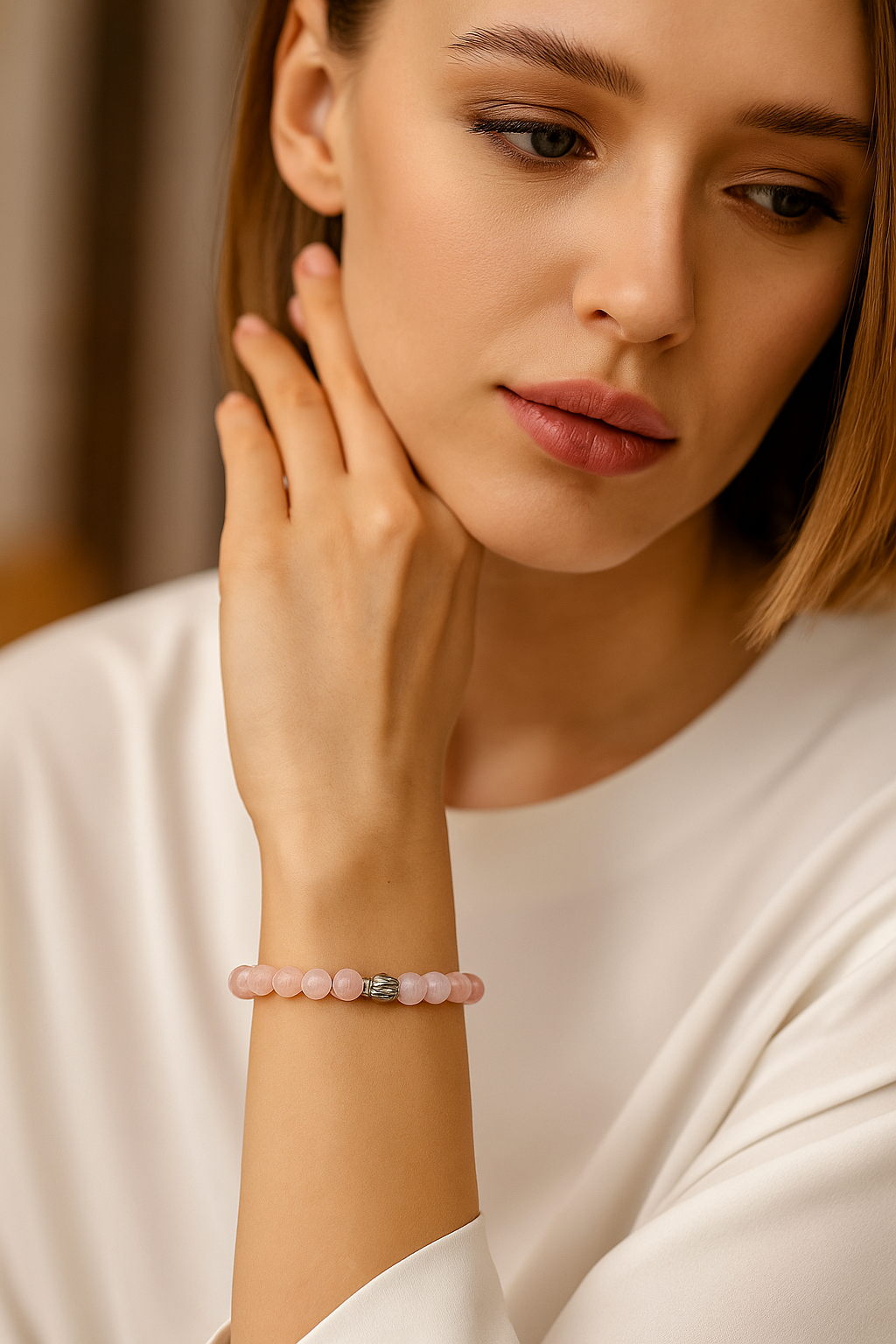 Kunzit taşları, içsel ışık yansımaları ve narin tonlarıyla her bilekliği eşsiz kılar. Hafif yapısı ve duygusal zarafetiyle günlük stilinize zarif bir dokunuş eklemek isteyenler için mükemmel bir tercihtir.