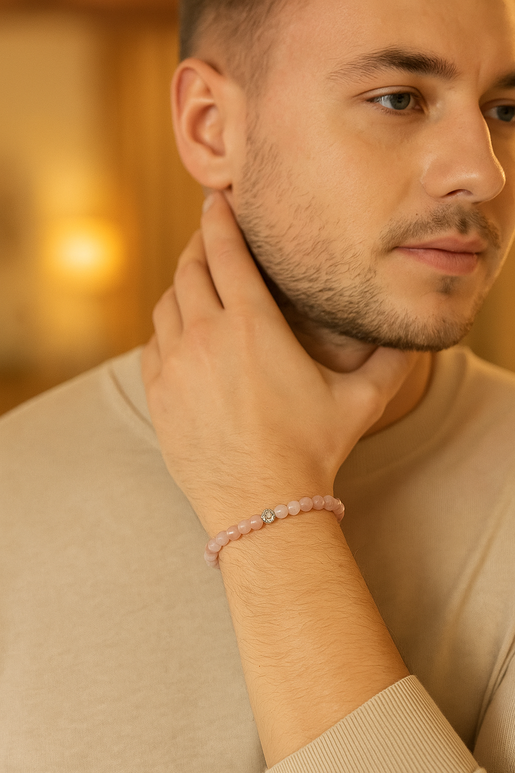 Yumuşak lavanta, açık pembe ve şeffaf tonların zarif uyumunu taşıyan kunzit taşı, bu özel bileklikte 6 mm yuvarlak kesim formunda dizilmiş ve sade ama romantik bir tasarımla sunulmuştur. Taşların yarı saydam yapısı ve doğal parlaklığı, bilekte yumuşak ve huzurlu bir duruş sergiler.