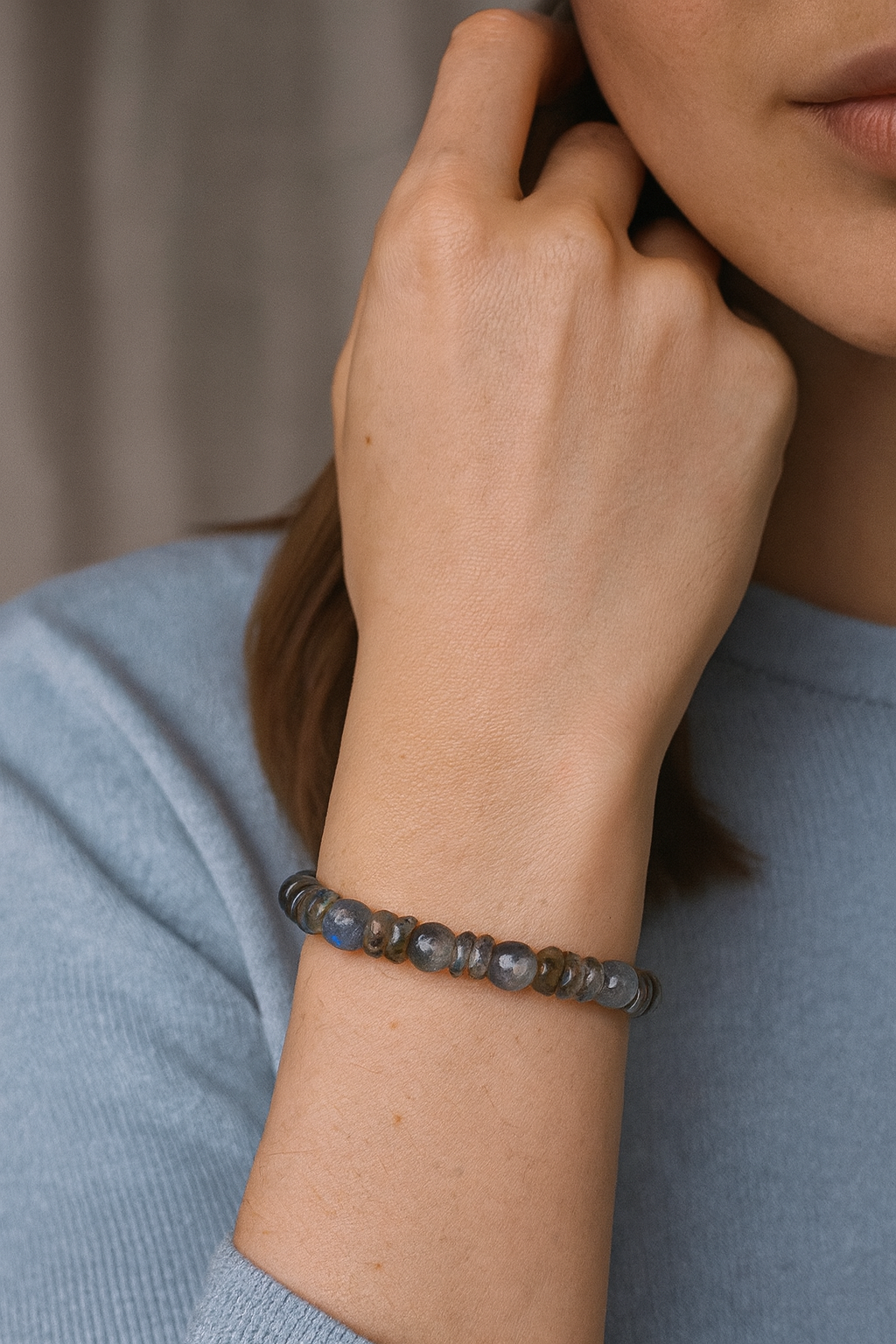 Her labradorit taşı %100 doğaldır ve kendine özgü ışıltısı, damar yapısı ve renk geçişleri sayesinde her bileklik tek ve benzersizdir.