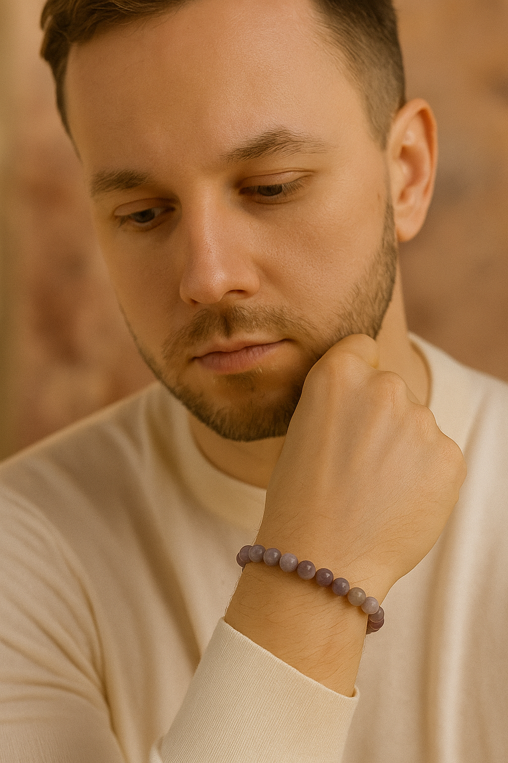 Pirtash kalitesiyle lepidolit taşının huzurlu ve yumuşak enerjisini bileğinizde taşıyın.