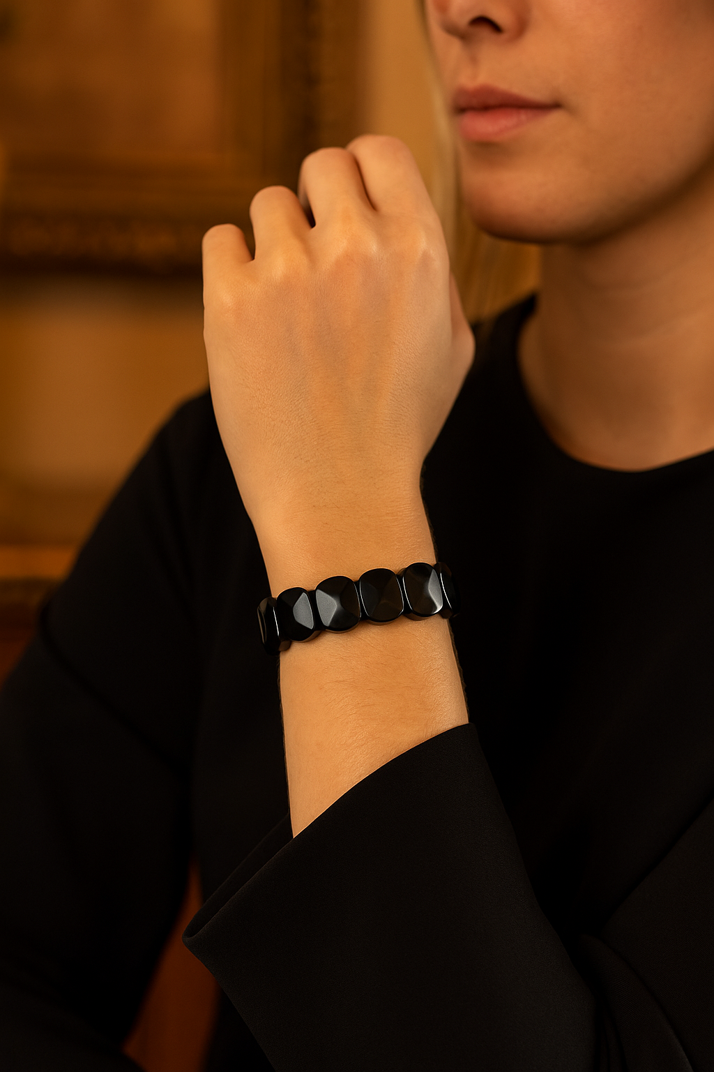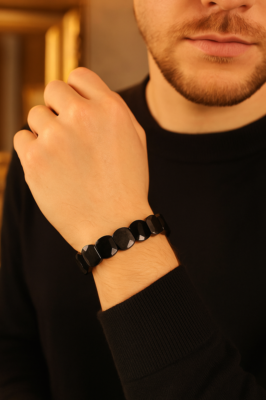 Modern tarzlara güçlü bir doğal detay kazandıran bu bileklik, hem günlük hem özel anlarda kendini belli eden bir şıklık sunar. Her bir taş, obsidyenin doğal parlaklığı ve karakteristik yapısıyla benzersizdir.