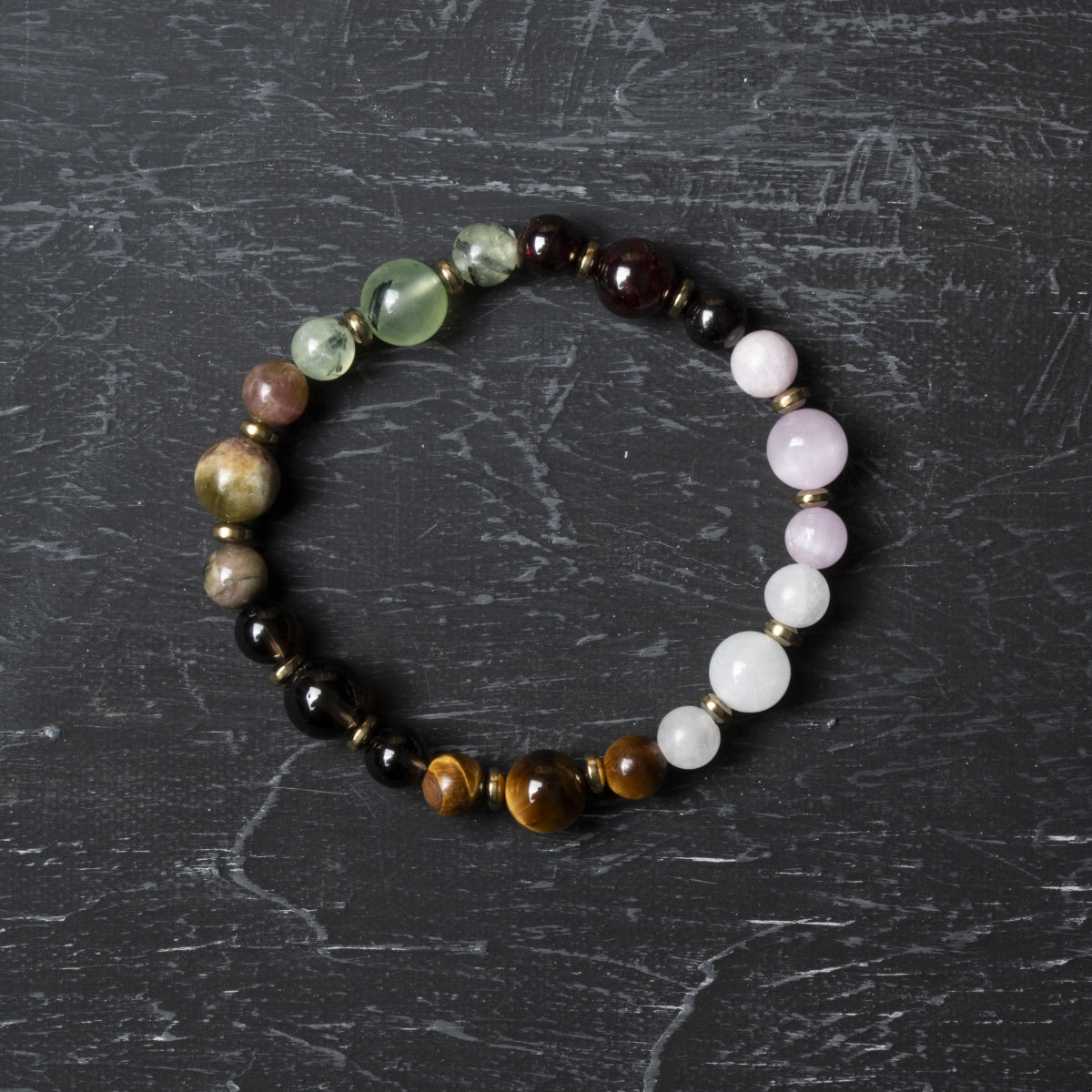 Sorumluluk sahibi, sabırlı ve güçlü yapısıyla bilinen Oğlak burcuna özel olarak tasarlanan bu bileklik, burcun içsel dengesi ve doğasına uygun yedi farklı doğal taşın bir araya gelmesiyle oluşturulmuştur.