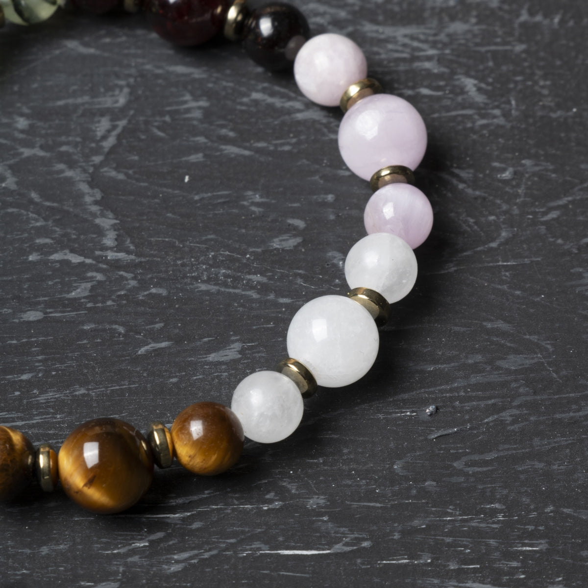 Taşlar: Dumanlı Kuvars, Turmalin, Prehnit, Lal (Garnet), Kunzit, Kristal Kuvars, Kaplan Gözü