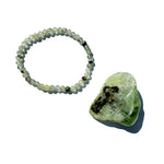 Yarı saydam yapısı, yumuşak yeşil tonları ve doğal iç oluşumlarıyla tanınan Prehnit doğal taş bileklik, 6 mm çapında özenle cilalanmış boncuklarla hazırlanmıştır. Doğal sisli görünümü ve zarif duruşuyla sade ama etkileyici bir stil sunar. Hafif ve dengeli renkleri sayesinde hem tek başına hem katmanlı bileklik kombinlerinde kusursuz uyum sağlar.