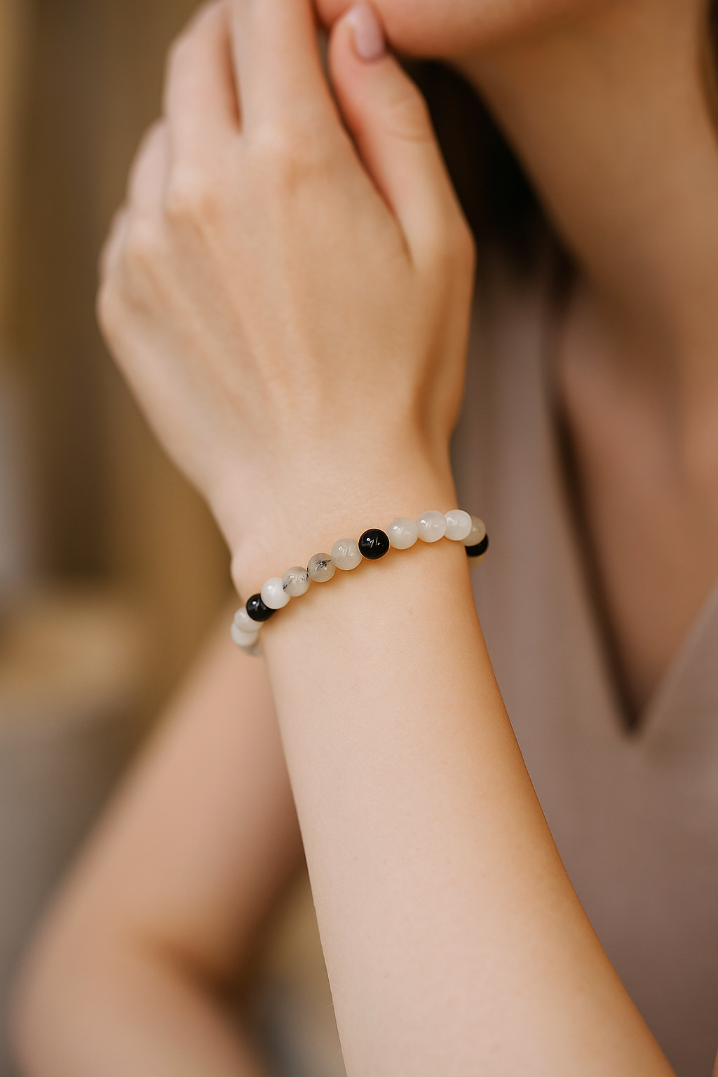 Rutilli kuvars taşları, şeffaflık içinde barındırdığı doğal rutil desenleriyle her bilekliği özgün kılar. Işıkla buluştuğunda taşın içindeki iğne yapıları belirginleşir ve doğal bir sanat eseri gibi görünür. Hem sade hem dikkat çekici aksesuarlar arayanlar için ideal bir tercihtir.