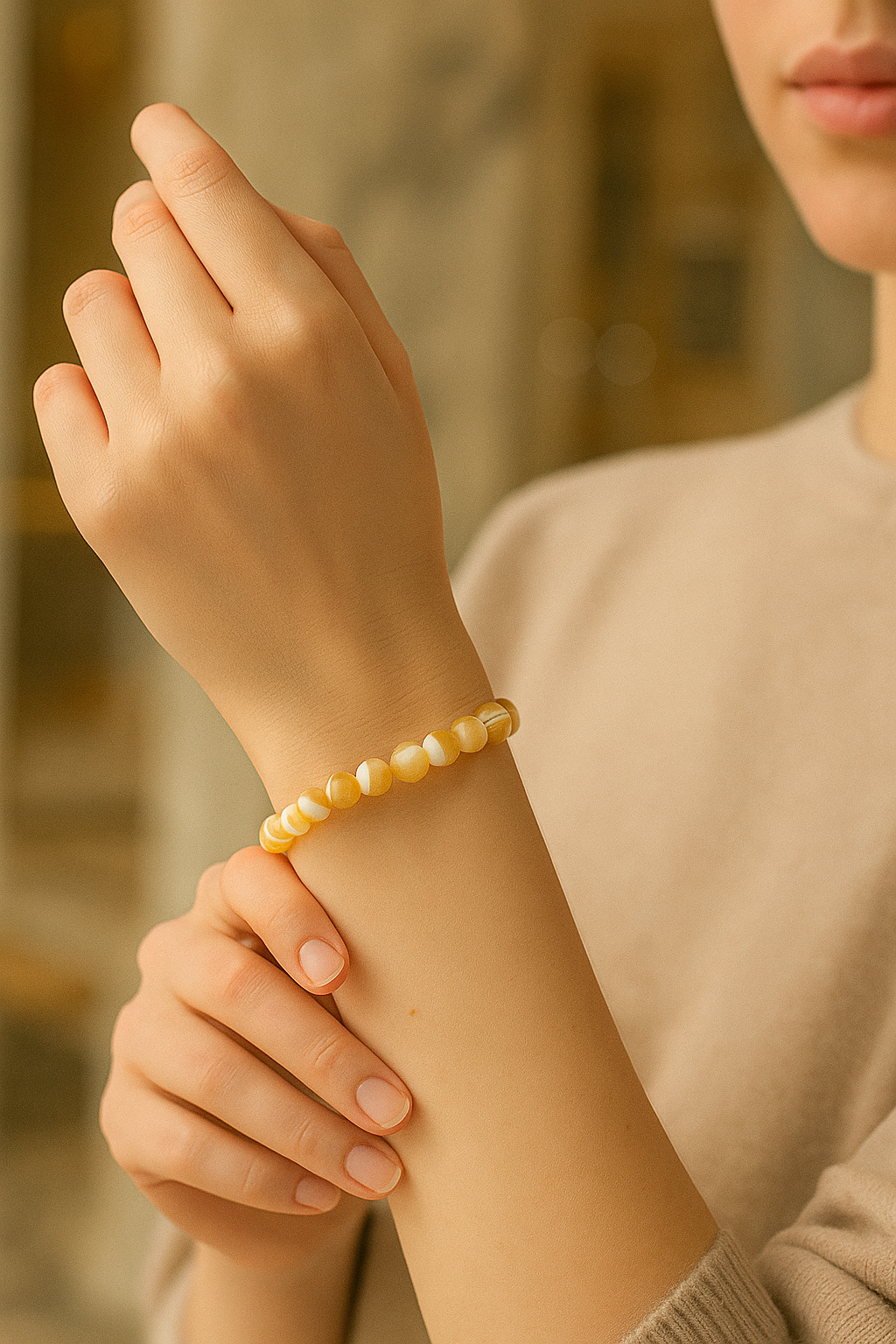Pirtash kalitesiyle sedef taşının doğal, saf ve zarif enerjisini bileğinizde taşıyın.