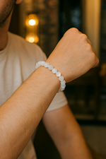 Selenit taşları kırılgan ve doğal bir yapıya sahip olup, her bilekliği ışıkla farklı bir şekilde yansıtır. Yumuşak beyaz renkleriyle hem sade hem de etkileyici bir duruş sergiler. Minimalist, huzurlu ve saf bir stil arayanlar için ideal bir seçimdir.