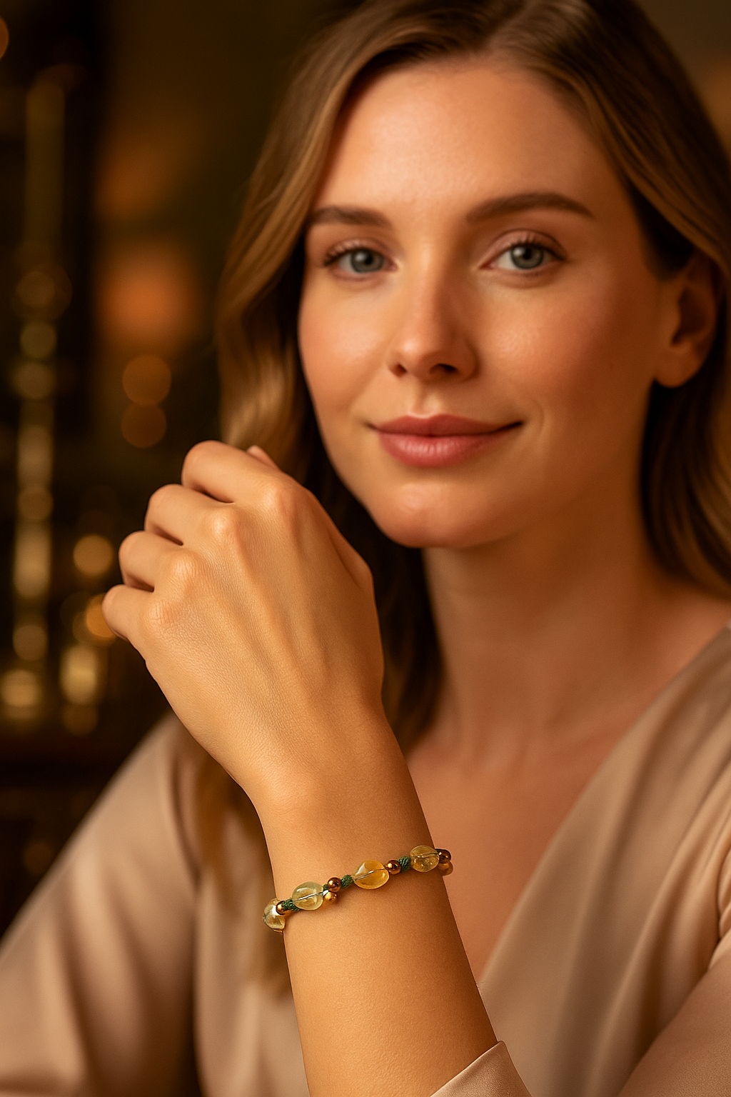 Her taşın şekli, rengi ve parlaklık düzeyi doğaldır ve her bileklik, doğanın izlerini taşıyan benzersiz bir parçadır. Hem gündelik kullanımda hem özel kombinlerde öne çıkar.