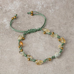 Sıcak sarıdan bal rengine uzanan doğal tonlarıyla öne çıkan sitrin taşı, bu özel bileklikte natürel (ham formuna yakın) kesimiyle sunulmuştur. Her taş, doğadan geldiği haliyle korunmuş; el yapımı, ayarlanabilir makrome ip ile tamamlanarak sade ve doğal bir şıklık elde edilmiştir.