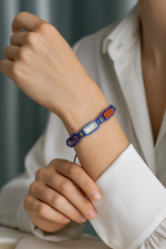 El işçiliğiyle örülmüş ayarlanabilir makrome tasarım, farklı bilek ölçülerine kolayca uyum sağlar. Hem günlük kullanımda hem de özel günlerde şık bir tamamlayıcıdır.