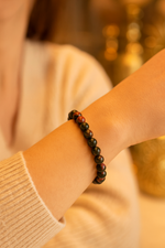 Yeşil epidot ve pembe ortoklaz minerallerinin doğal birleşiminden oluşan unakit taşı, bu özel bileklikte 6 mm çapında küre kesim formunda sunulmuştur. Taşın doğal renk karışımları sayesinde her bileklik, doğadan ilham alan özgün bir estetik taşır.