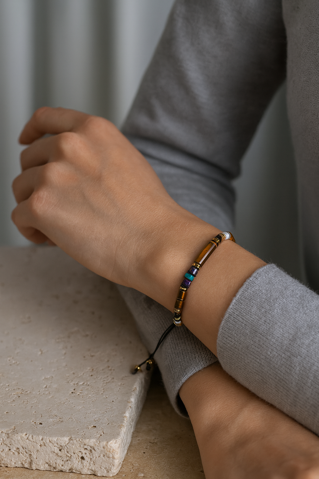 Her taş %100 doğaldır; damar yapısı, rengi ve parlaklığıyla her bileklik benzersizdir.