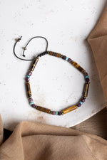 Sertifikalı Yakut, Kaplan Gözü & Hematit Doğal Taş Makrome Örme Ayarlanabilir Bileklik | Pirtash | Özel Üretim
